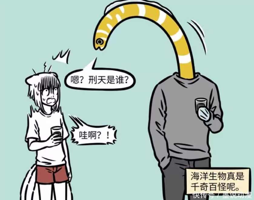 不外这个很像刑天的东说念主,其实是海蛇化形而来。谁能思到海蛇化形会这样离奇,还把头藏在躯壳内部。九月被海蛇吓了一跳,推测齐差点炸毛。不外海蛇并不遒劲刑天,九月也不敢继续搭话。海洋生物如实奇奇怪怪,九月还有太多没见过。