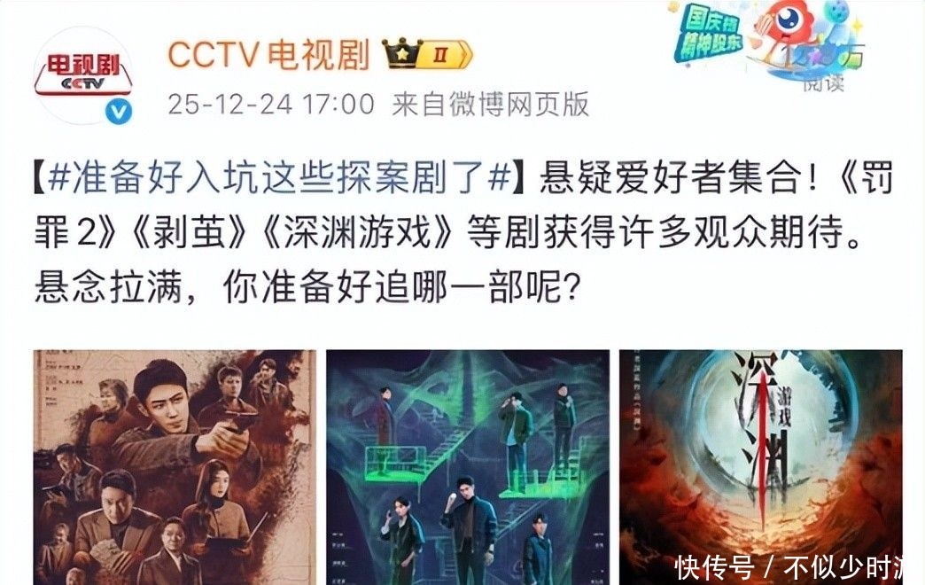 3. 就在不少东谈主惦记年末履行空档之际,CCTV电视剧频谈重磅推出三部高能探案新剧,俄顷燃烧了不雅众的追剧关注,将期待值推向顶峰。