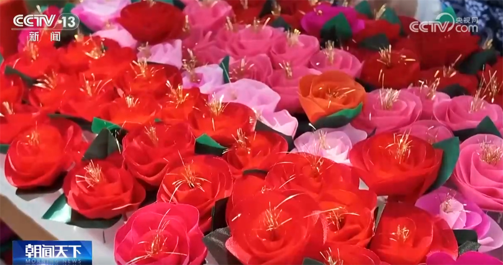 蚕花扎制、蚕茧手作等特质摊位前围满了慕名而至的游客,寰球动手体验蚕花制作,千里浸式感受蚕桑非遗身手的小巧与独到。