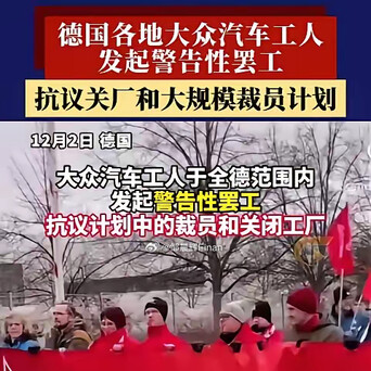 德国各人布告要关闭3家德国工场,裁人几万东说念主,条件统统职工降薪10%。这激勉了13万德国各人汽车工东说念主的大歇工,工东说念主示意热烈反对镌汰福利。