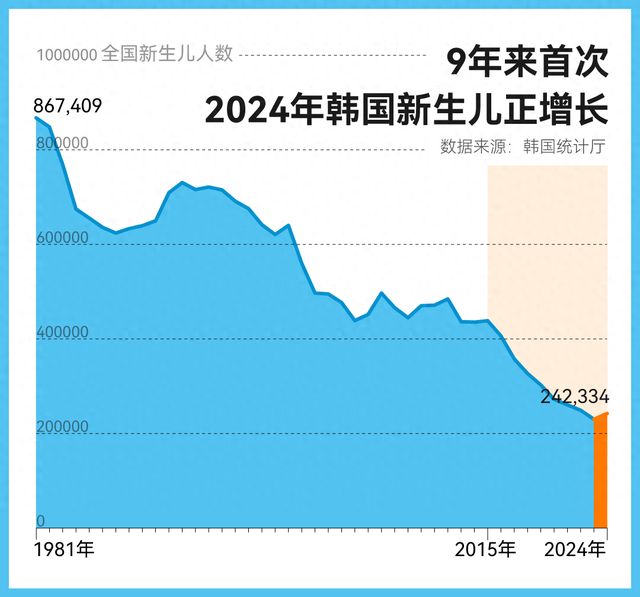 2024 年 6 月刚文书进入“东谈主口迫切景色”的韩国,在年末的壮盛儿数完毕了九年以来的初次增长——该国 2024 年壮盛儿东谈主数为 24.23 万东谈主,比拟 2023 年多了 1.23 万东谈主。