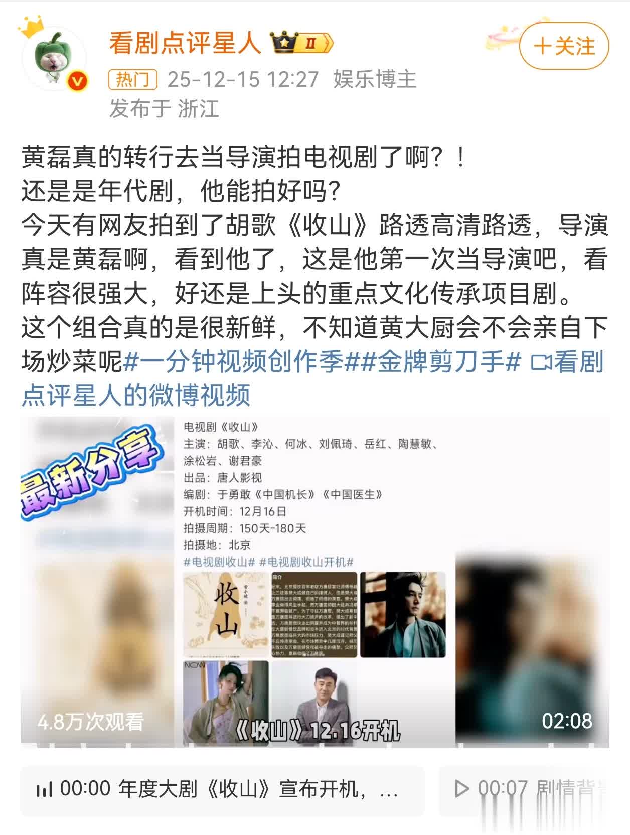 原来,《东谈主间隽永》这部剧的导演尽然是黄磊,即是《向往的生计》中的黄磊。