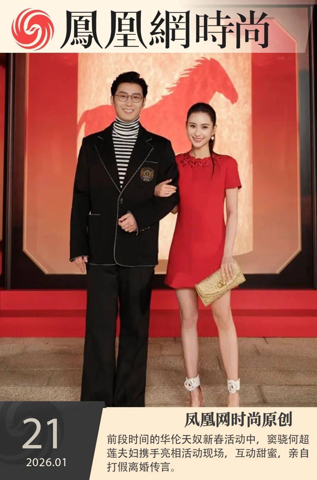 何超莲在手脚中上身华伦天奴2026春夏系列红色礼裙,搭配金色手袋,新春氛围感稳稳拿合手。而窦骁则上身高领条纹羊毛衫,外搭羊毛夹克,惬心的同期兼顾熟谙内敛。