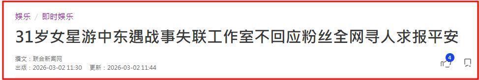 值得一提的是,还有一位着名女星被曝在中东失联。
