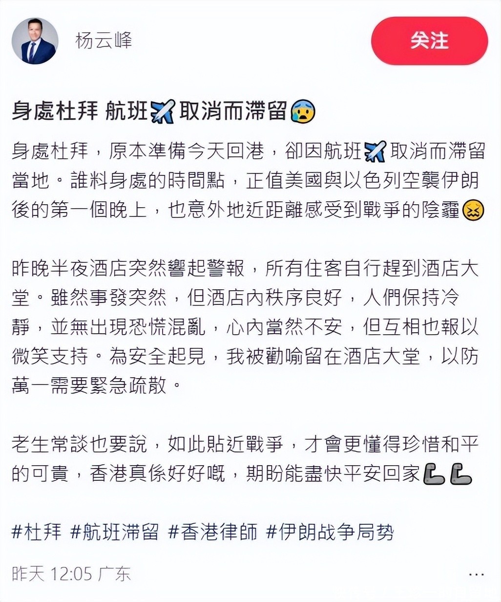 和陈浩民蒋丽莎老婆相似,翁静晶的门徒杨云峰也淹留在了迪拜。