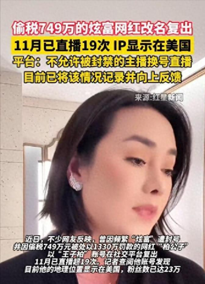参考尊府:曾偷税749万的炫富网红“柏令郎”更名复出,11月已直播19次欧洲杯体育,平台:不允许被封禁的主播换号直播 红星新闻