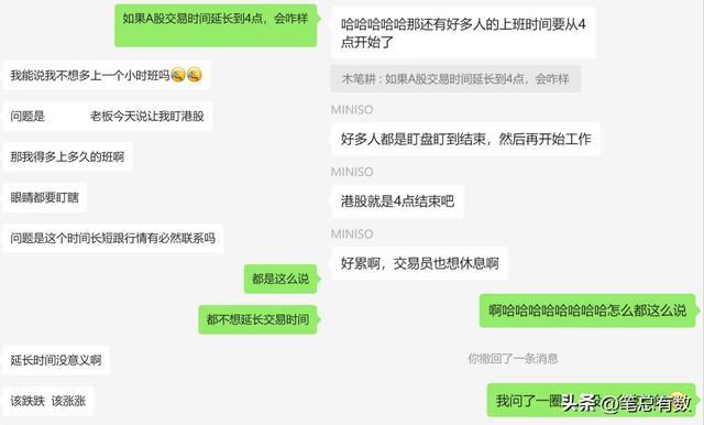 而中小投资者概况率如故利益受损的一方。看到这个建议时,我便去小小“采访”了一下身边炒股的一又友们,无一例外,没一个东谈主说好。“再让我多盯盘一小时,这不是加钟,这是加班。”“A股当今这个德行,该涨涨该跌跌,延迟一小时往复时间,除了让券商多收点手续费,还能改换什么?