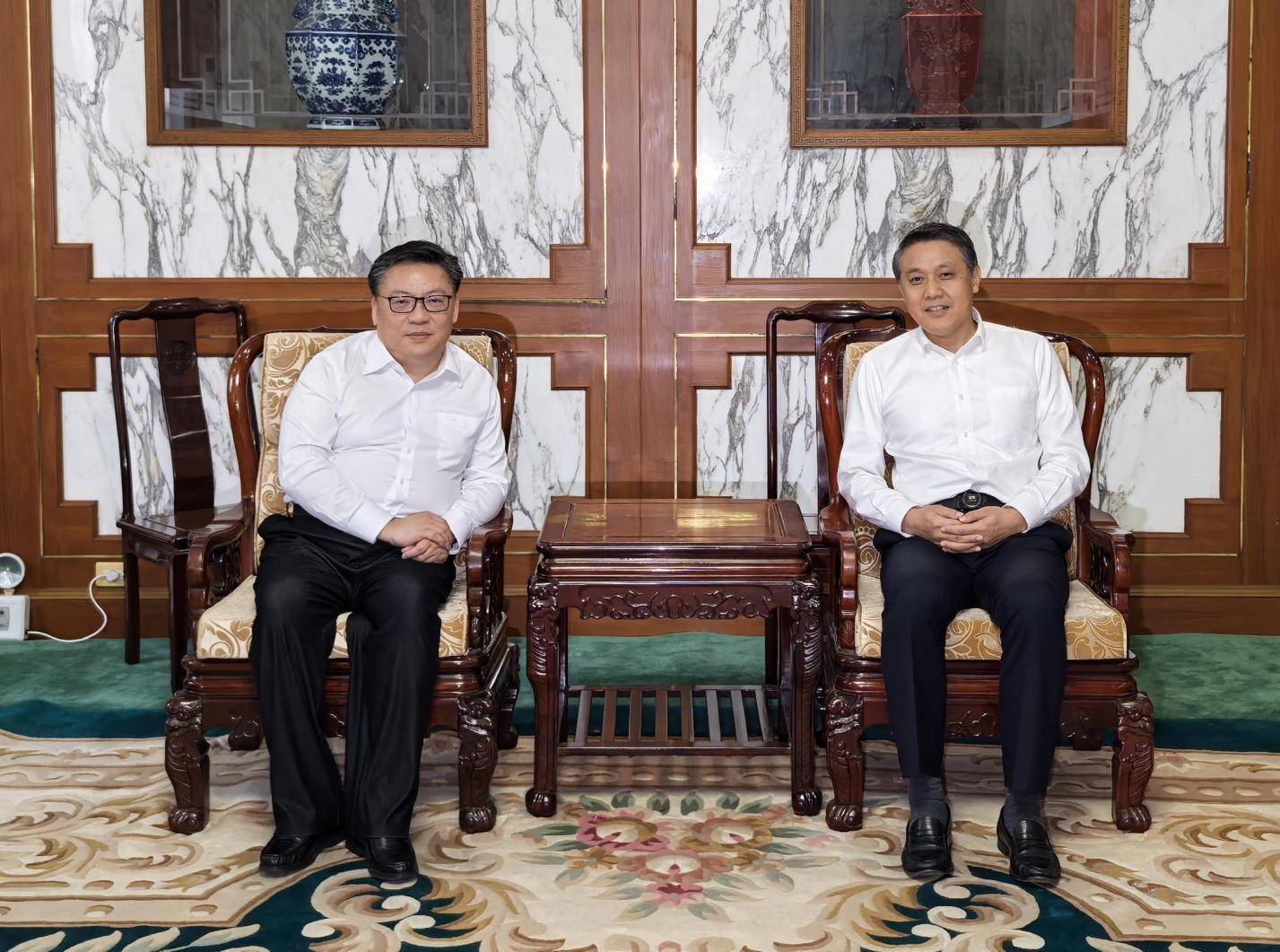 10月8日,中国驻朝鲜大使王亚军会见中国上海艺术团副团长、上海市委常委、宣传部部长赵嘉鸣。中国驻朝鲜使馆供图