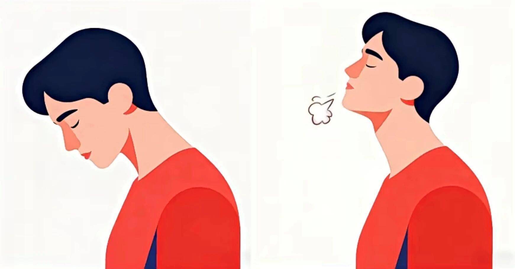 2.垂头吸气、昂首呼气,重迭3~4次。